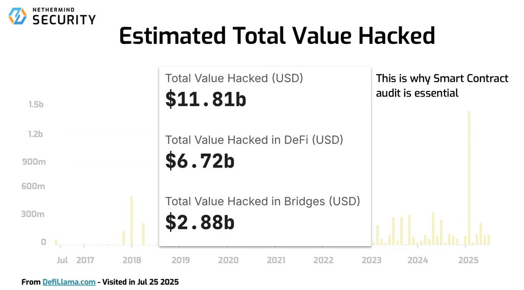 Smart contract vulnerabilities have led to more than $11.8 billion in total value hacked as of July 2025. With the stakes so high, Nethermind Security explored how AI could complement traditional audits. This case study shows how their security research team tested AuditAgent, an AI smart contract audit tool developed internally, and what they learned from applying it to real audits.